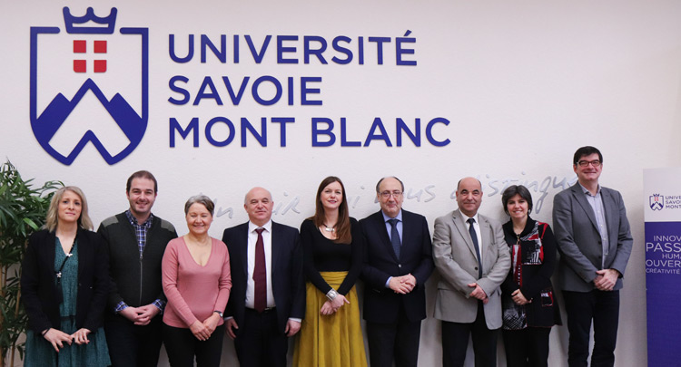 Universités proches à bien des égards, l’Université Savoie Mont Blanc (USMB) et l’Université de Pau et des Pays de l’Adour (UPPA) travaillent de concert depuis plus de deux ans maintenant. Pour une troisième fois, le président de l’UPPA, Mohamed Amara, accompagné de Frédéric Tesson, vice-président formation, Eliane Sbrugnera, Conseillère technique Formation et Marie-Hélène Philippe, Directrice de cabinet, ont été accueillis à l’USMB les 1er et 2 février 2018.