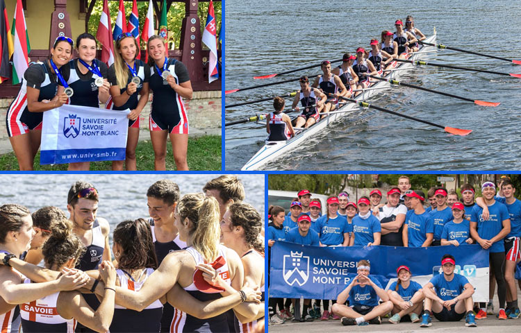- 8+ féminin – Championnes de France universitaires : Perrine Delaporte, élève-ingénieure en PEIP et Clare Geray, élève-ingénieure en 4ème année de diplôme Mécanique Matériaux parcours Matériaux Composites à Polytech Annecy-Chambéry ; Justine Bandiera, étudiante en 1ère année de licence Sciences de la vie à l’UFR Sciences et Montagne ; Camille Geray, étudiante en 1ère année de licence Information-Communication à l’UFR Lettres, Langues et Sciences Humaines ; Margaux Baetche, étudiante en 2ème année de licence de Droit à la Faculté de Droit de l’USMB ; Nina Courtois, étudiante en 2ème année de licence Sciences et techniques des activités physiques et sportives (STAPS) ; Emmy Benollet, étudiante en DUT Gestion des entreprises et des administrations à l’IUT d’Annecy ; Apolline Carmagnac et Blandine Carmagnac, étudiantes dans l’académie de Grenoble.