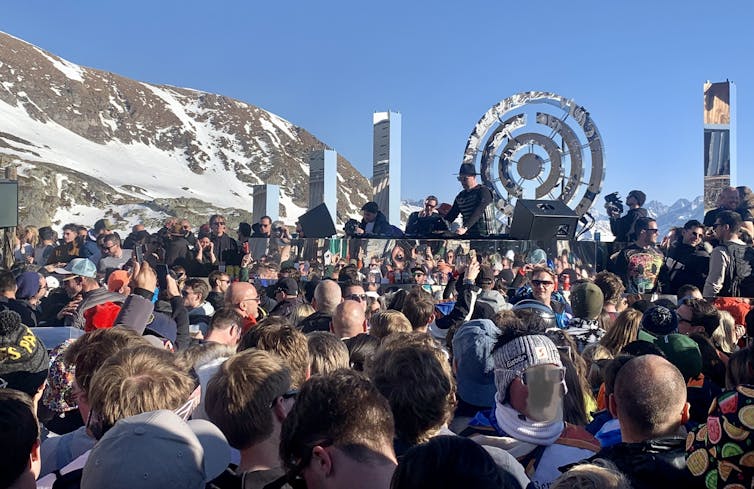 L’édition hiver du grand festival belge Tomorrowland se tient à l’Alpe d’Huez, la station de ski de l’Isère, fin mars, depuis 2019. La moyenne d’âge des festivaliers est de 32 ans, ce qui est élevé pour un festival EDM (electro dance music) : 27 ans pour Tomorrowland Summer, 24 ans pour Electrobeach festival, par exemple. Il s’explique notamment par le fait que l’accès au festival est interdit aux moins de 18 ans, mais surtout par le coût important du pack billet d’entrée + skipass pour les remontées mécaniques (465 euros pour quatre jours, 615 euros pour sept jours) auquel il faut ajouter l’hébergement dans la station. Les quadra et quinquagénaires y sont en nombre et côtoient les plus jeunes générations.