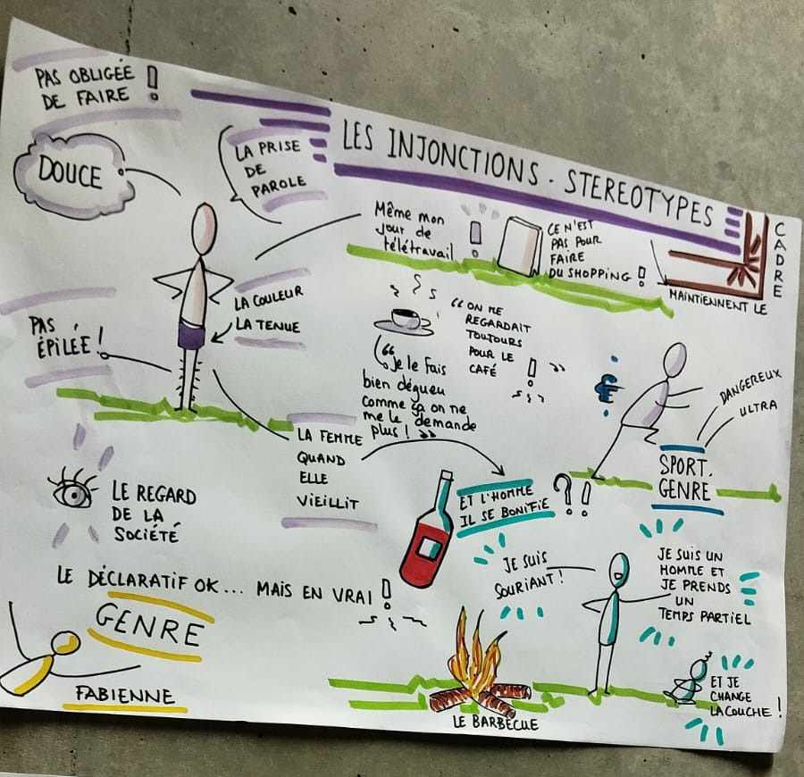 « L’enjeu des outils mobilisés dans la fresque est précisément d’aborder la complexité des inégalités de genre et de sexe, et de dépasser une lecture binaire et simplificatrice opposant femmes et hommes. », Fabienne Gillonnier, responsable APC STAPS et animatrice de la fresque de l’égalité.