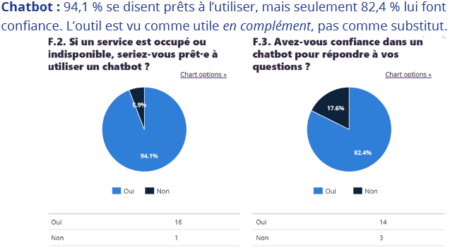 – Le SVI répond à une attente de personnalisation de l’expérience des étudiants, mais aussi l’importance persistante du contact humain, en particulier en cas de doute ou de difficulté : les situations complexes, ou les besoins d’explication fine, appellent selon plusieurs répondant·es une interaction humaine directe dont le téléphone.