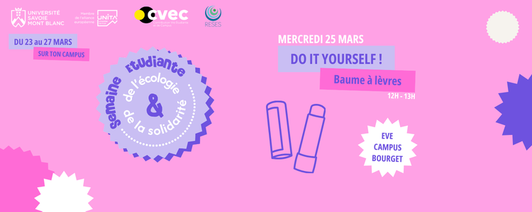 Du 24 au 27 mars 2025, l’USMB participe à la Semaine Étudiante de l’Écologie et de la Solidarité (SEES) ! Pendant cinq jours, votre campus se transforme en véritable laboratoire d’idées, d’actions et de convivialité autour d’un objectif commun : réduire nos déchets et repenser nos habitudes.