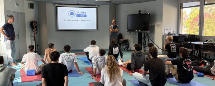 Jeudi 16 octobre 2025 après-midi, une vingtaine de sportifs de haut niveau en section aménagée a participé à un atelier de respiration animé par Gabriele Giuffrida, accompagné par David Boiron (responsable des sections aménagées).