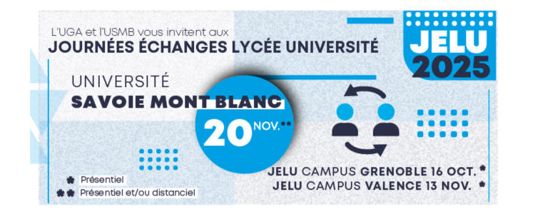 Les journées d’échanges lycée-université (JELU) sont organisées par les universités de l’académie de Grenoble en partenariat avec le rectorat à l’attention des équipes pédagogiques et éducatives des lycées ainsi qu’aux psychologues de l’Éducation nationale de l’académie.
