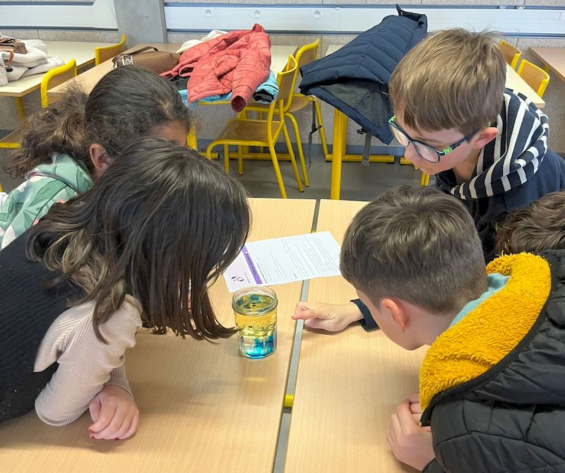 Lors de la seconde heure, place à la pratique ! Les élèves ont réalisé une expérience scientifique en fabriquant une lampe à lave. Une activité simple, visuelle et spectaculaire qui a suscité beaucoup d’enthousiasme… et de questions :