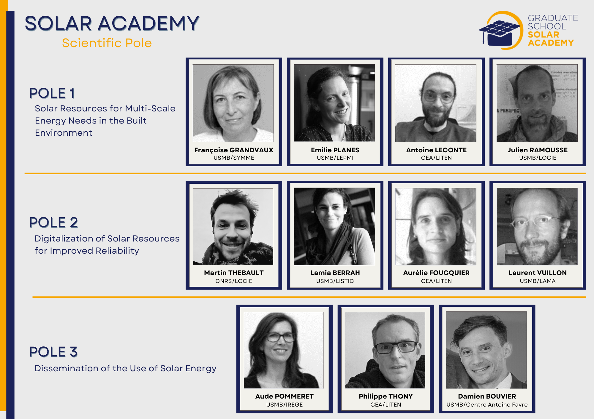 The research at Solar Academy is structured around 3 scientific poles: