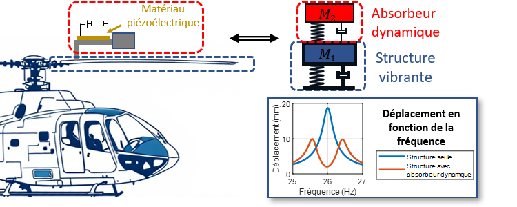 Le développement de structures légères dans l’aéronautique et l’automobile a introduit de nouveaux défis techniques liés aux vibrations et au bruit. En réponse, les absorbeurs dynamiques suscitent un intérêt croissant pour atténuer les vibrations. Le principal défi de leur conception est leur sensibilité aux changements de fréquence. Un léger décalage des fréquences de résonance peut en effet avoir une incidence considérable sur les performances d’atténuation.