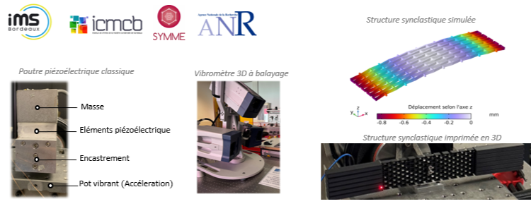 Les travaux menés au SYMME concernent les aspects de modélisation et de conception des récupérateurs. Des modèles analytiques et des simulations par des logiciels éléments finis permettent l’étude de structures innovantes. Le SYMME travaille également sur la conception mécanique des prototypes et leurs caractérisations.